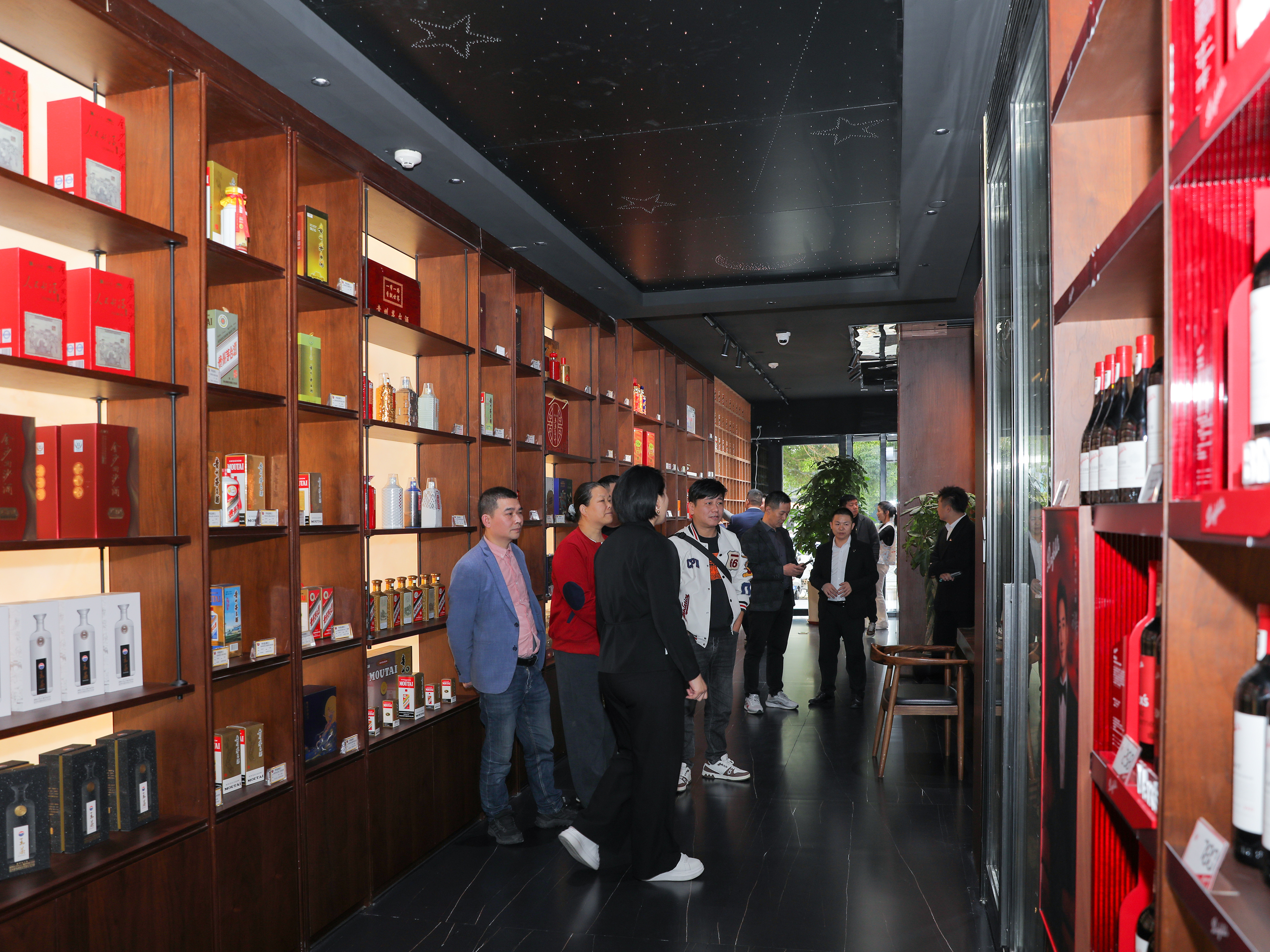 活动伊始,华致团队特邀嘉宾走进上海闵行号文路店,近距离体会门店每一处细节。全球名酒、精品酒精致陈列,特色餐饮区、K歌区、雪茄吧、调酒台拉满体验,为顾客呈现一个超越期待的复合式社交空间,并带来更多服务触点与增长可能。