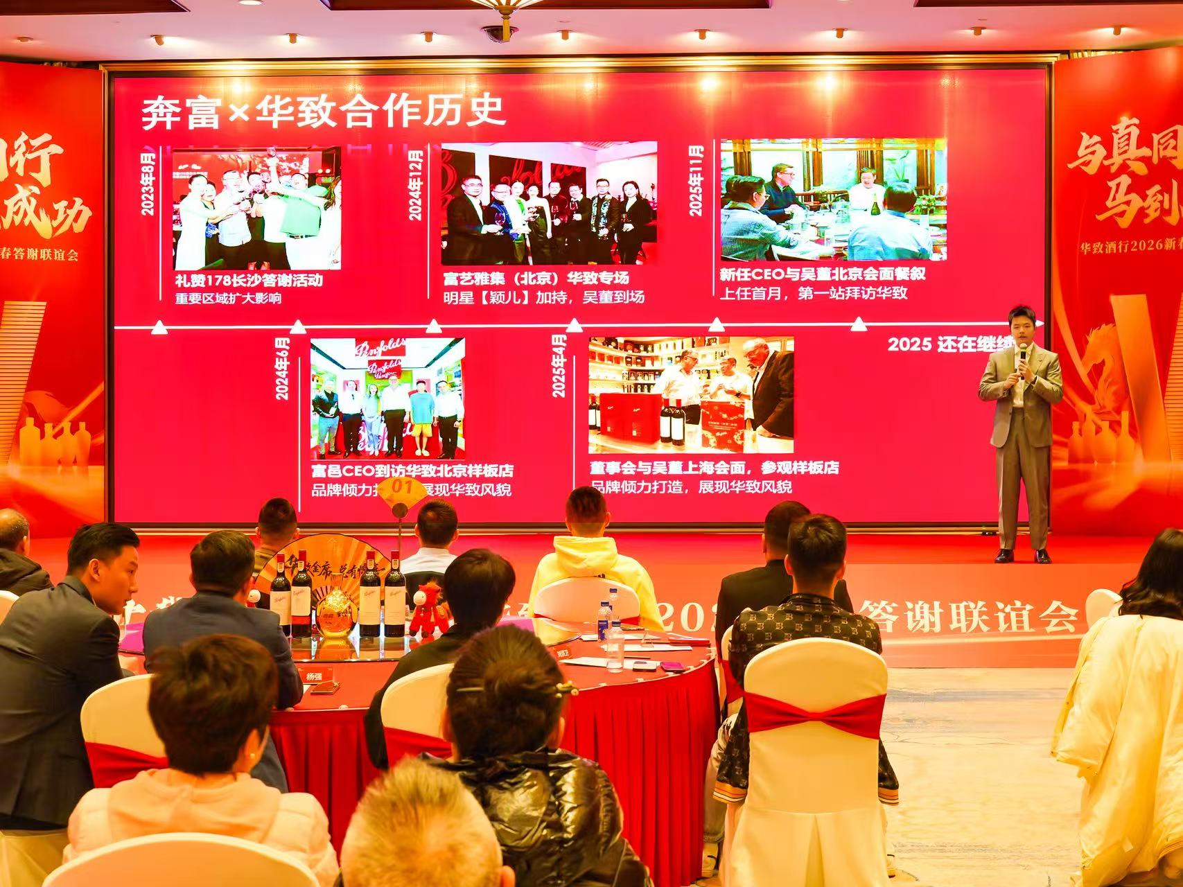 奔富中国区资深全国经销商重点客户经理赵超逸Leo、奔富中国区全国经销商重点客户经理王渊豪Henry莅临现场。王渊豪Henry讲述了Penfolds180余年酿造哲学、与华致的深厚渊源,并详细介绍奔富为华致合伙人提供的专属市场支持,为共同的事业添薪加火。多位嘉宾现场签约奔富区域代理,享受强强联合的助推力。