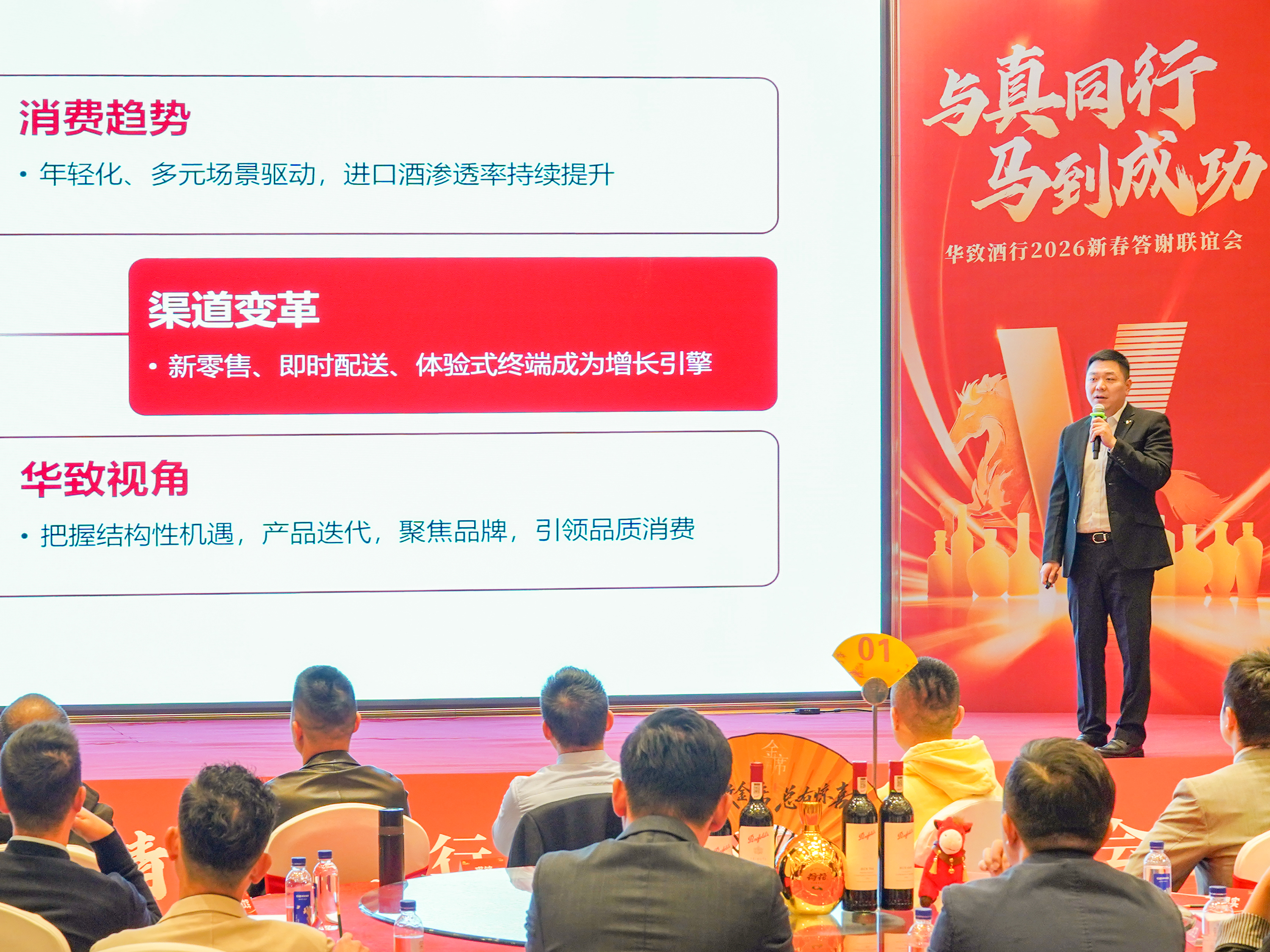 “赣水苍茫闽山碧,横扫千军如卷席”,当战略的锋芒融入醉人的醇酿,华致酒行常务副总裁杨强向所有嘉宾致以深切感谢与诚挚祝福。杯盏间是战友的默契,是家人的温情,更是对新征程的昂扬展望。